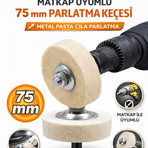 75 mm Parlatma Keçesi Matkap Uyumlu – Civatalı Somunlu Metal Pasta Cila Parlatma Diski