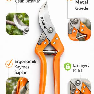 Profesyonel Budama Makası – Keskin Çelik Bıçaklı Ergonomik Dal ve Meyve Ağacı Kesme Makası