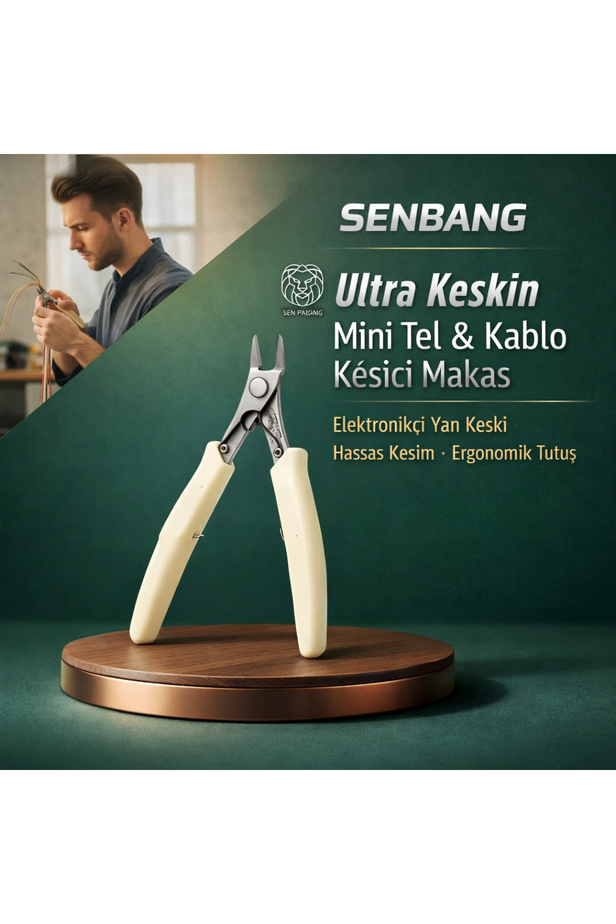 SENBANG Ultra Keskin Mini Tel ve Kablo Kesici, elektronik işleri ve ince tel/kablo kesimleri için kompakt, güçlü ve pratik bir çözümdür.; Keskin çene yapısı sayesinde temiz ve kontrollü kesim sağlar.; Hobi, tamir ve profesyonel elektronik uygulamalarında rahatlıkla kullanılabilir.; Ergonomik sapları elde kaymayı azaltır, uzun süreli kullanımda konfor sunar.; Öne Çıkan Özellikler • Ultra keskin kesim: Temiz ve hızlı kesim • Mini & kompakt gövde: Dar alanlarda kolay kullanım • Hassas kesim performansı: İnce tel ve kablo için ideal • Ergonomik tutuş: Konforlu, güvenli kullanım • Çok amaçlı kullanım: Elektronik, hobi, tamir, atölye Kullanım Alanları • Elektronik tamir ve montaj işleri • İnce tel/kablo kesme işlemleri • Hobi ve DIY uygulamaları • Atölye ve ev kullanımı Paket İçeriği • 1 adet SENBANG Mini Tel & Kablo Kesici Makas